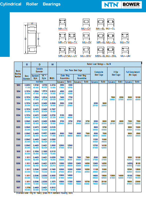 B D W Radial Load Ratings  lbs./N