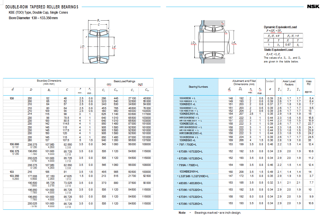 Bearing Numbers Abutment and Fillet Dimensions (mm)