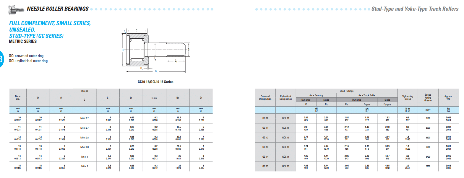 Cyindrical Designstion Load Rstings Tichenine iorque Speed